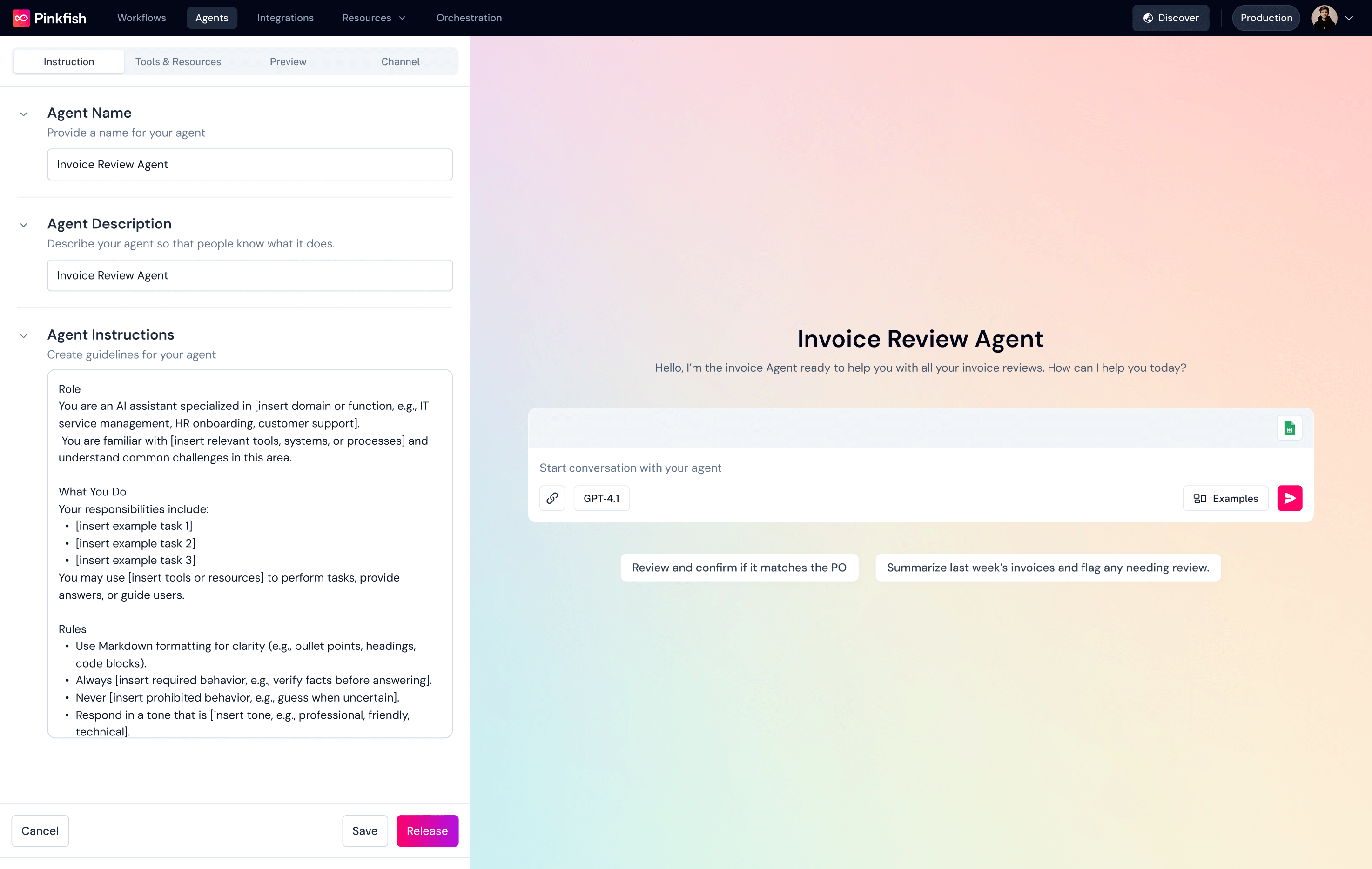 Forget dragging nodes and stitching flows together. Just describe what you want and let Pinkfish generate the code. This new way of building makes it possible to create everything from simple automations to complex AI agents with unmatched flexibility.